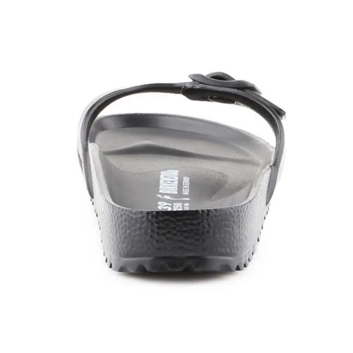 Un modèle Birkenstock classique. Elle peut être traitée comme une tong dans la rue ou comme une pantoufle dans la maison. La tige est en matériau synthétique Birko-Flor durable et doux pour la peau. La tige est fermée par une sangle avec une boucle réglable individuellement.