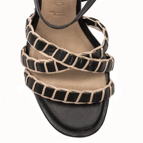 Les sandales sont un type de chaussures dont il est difficile de se passer pendant les chaudes journées d’été. Nous vous présentons de belles et uniques sandales pour femmes de la marque allemandeTamaris. Fabriqué en cuir fleur naturel de haute qualité et en plastique noir et beige. Les sandales sont dotées d’une fermeture à boucle confortable qui vous permet de stabiliser les chaussures sur vos pieds et de les ajuster à la largeur requise. L’intérieur est fabriqué dans un matériau de haute qualité qui, associé à l’insert en cuir naturel souple, garantit un confort d’utilisation élevé. Modèle avec talon ouvert et pointes libres. Un beau talon stable de 7,5 cm affine naturellement la jambe, donnant une belle forme à l’ensemble de la silhouette. Un délicat liseré beige sur les rayures illumine le modèle et le rend expressif. Très confortable, léger et intemporel. Pour les femmes qui apprécient la beauté et le confort.