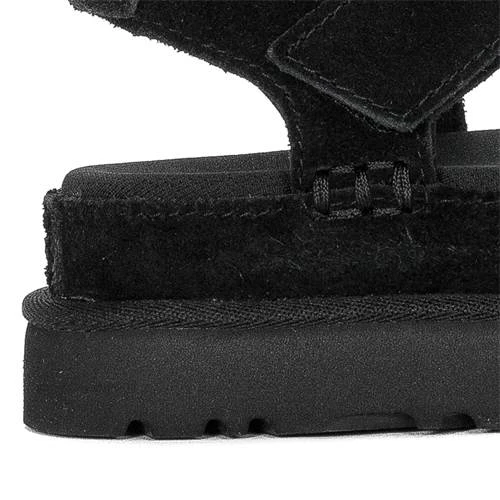 UGG est une marque australienne qui crée des chaussures en cuir d’agneau naturel et en laine de mouton de la plus haute qualité. Cependant, les collections de la marque ne sont pas seulement des propositions pour l’hiver, mais aussi des modèles qui complèteront bien les styles d’été. Les sandales à plateforme inhabituelles en sont un exemple. La tige est en cuir suédé naturel, très douxde couleur noire. Le modèle est fermé par deux bandes Velcro, grâce auxquelles vous pouvez parfaitement ajuster les chaussures à vos besoins individuels. Une semelle intérieure confortable et bien formée en tissu agréable au toucher et une plateforme de 5 cm de hauteur nous permettent de nous y sentir très à l’aise. Une décoration subtile de ce modèle est le logo en relief sur la semelle et sur le velcro. Modernes et très confortables, elles complèteront à merveille le style estival. Ils devraient être dans votre garde-robe aujourd’hui pour que vous puissiez en profiter tout l’été.